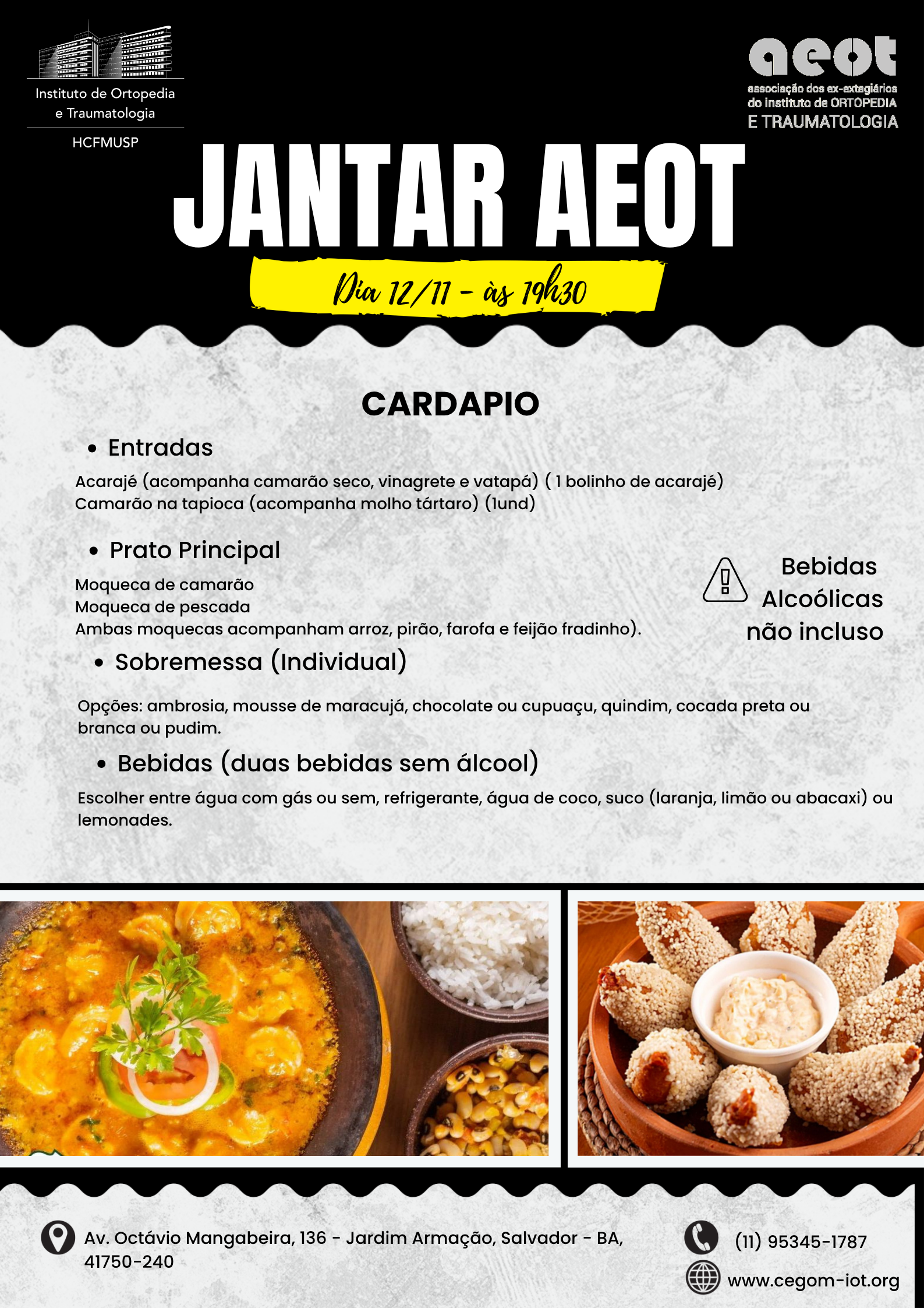 JANTAR AEOT - CBOT 2025 DIA 12 de Novembro as 19h30 - Salvador Restaurante Ki- Mukeka